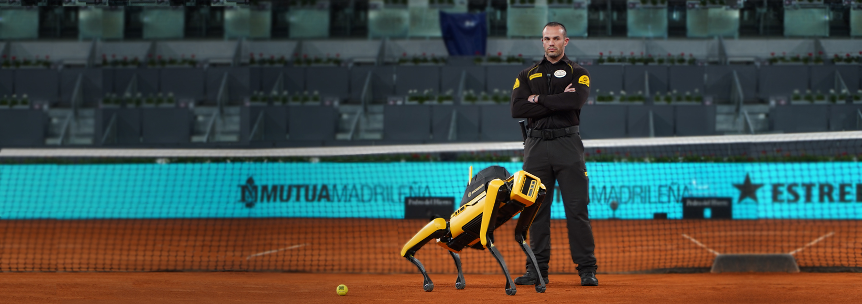 En Prosegur Security seguimos desarrollando nuestro modelo de Seguridad Híbrida, donde la robótica complementa y amplía las capacidades del equipo sobre el terreno y permite establecer un servicio de seguridad más eficiente y eficaz. Gracias a la participación de nuestro perro robot inteligente, Yellow, logramos mejorar la experiencia de seguridad para todos los asistentes del Mutua Madrid Open.